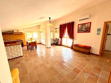 Le due grandi terrazze panoramiche regalano una vista mozzafiato, ideali per cene estive o semplicemente per ammirare il tramonto. Gli spazi interni sono ben distribuiti, con 3 locali e un bagno, rendendo questo attico perfetto per famiglie o coppie in cerca di comfort e stile. È disponibile anche un posto auto e c'è la possibilità di acquistare l'immobile completamente arredato.
