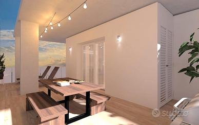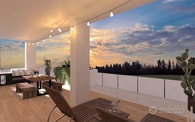 Castelnuovo R. in zona centrale, presentiamo in vendita splendido attico di nuova costruzione, edificato con le più innovative tecniche costruttive, antisismico e al alto risparmio energetico, classe energetica A4 NZEB, unico appartamento al piano, di 400 mq. commerciali, con due terrazzi panoramici, di cui quello della zona giorno di 74 mq. e quello della zona notte di 53 mq., con ascensore direttamente all'interno dell'abitazione, come accessori tre garage fuori terra e due posti auto di proprietà esclusiva.