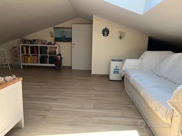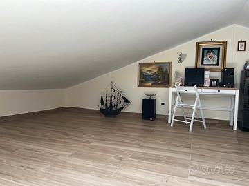 **Attico in Vendita - Spazio e Comfort nel Cuore della Città** Scopri questo splendido attico su due livelli, un vero gioiello nel centro del paese. Con una superficie commerciale di 135 m², l'appartamento offre un ampio soggiorno che si affaccia su un terrazzo perfetto per momenti di relax all'aria aperta. La cucina abitabile è ideale per chi ama cucinare e intrattenere gli amici. La zona notte comprende una camera matrimoniale e una cameretta, perfette per famiglie o per chi desidera uno spazio extra. Un bagno ben progettato e un ulteriore balcone di generose dimensioni completano l'offerta. Al piano superiore, una grande mansarda finestrata offre ulteriori possibilità di utilizzo, che può diventare un ampia camera da letto, studio o una zona giochi Questo attico è dotato di tutti i comfort moderni: aria condizionata, videocitofono e Velux automatico con serranda per l'oscuramento e automatizzazione per la pioggia e tendina interna. Ogni finestra è equipaggiata con zanzariere, garantendo un ambiente fresco e protetto. Inoltre, il grande box auto con serranda automatizzata e la cantina offrono spazio aggiuntivo per riporre tutto ciò che serve. Situato in una posizione centrale, a pochi passi da servizi essenziali come fermate dell'autobus, farmacia e supermercati, questo immobile rappresenta un'ottima soluzione per chi cerca ampia metratura e spazi esterni senza rinunciare alla comodità della vita cittadina. Non perdere l'opportunità di visitare questo attico in perfetto stato manutentivo, pronto per essere abitato!