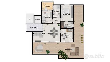o Ampia zona living open space di 28,71 mq con affaccio diretto sulla prima veranda e sulla terrazza;