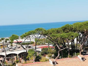 Attico a Baia Domizia Centro vista mare, Parco Ecauliptus, a 100m dalla spiaggia. A disposizione la piscina condominiale di 50m. Appartamento di 120mq su due livelli con terrazzo di 25mq. Primo livello: ingresso, soggiorno doppio, bagno con doccia, cucina, terrazzo. Secondo Livello: due camere doppie, bagno con vasca. 4 posti letto in due doppie. Posto auto in box privato. Per problemi avuti in passato NON SI ACCETTANO ANIMALI.