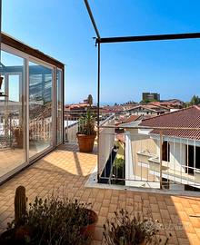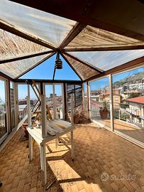 Nicotera, attico prestigioso, 2 camere letto, cabina armadio, 2 bagni, studio, salone triplo, grande cucina in muratura, due camini, tre terrazzi, vista mare, parzialmente arredato con mobili di pregio che in parte rimangono, riscaldamento autonomo, aria condizionata (da revisionare), terzo piano senza ascensore, 5 km dal mare, 20 min da Tropea, DISPONIBILE AMPIO GARAGE 2 POSTI AUTO 25.000 euro