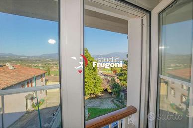 ATTICO QUADRILOCALE IN CENTRO STORICO CON VISTA LAGO MANERBA DEL GARDA - Attico quadrilocale con vista lago nel centro storico di Montinelle. L'ingresso all'immobile si apre su uno spazio che precede la luminosa zona giorno con cucina abitabile e soggiorno separato con vista lago, dalla cucina si accede a un primo balcone che si affaccia all'interno della corte condominiale. Il disimpegno collega la zona giorno con la zona notte che si compone di due spaziose camere matrimoniali, una camera doppia, un bagno finestrato e un secondo balcone. Completano la proprietà uno spazio destinato a parcheggio di un auto all'interno della corte condominiale e un locale lavanderia comune ad un'altra unità. Spese condominiali irrisorie. Euro 950/mese. CONTRATTO TRANSITORIO 18 MESI. NON SONO AMMESSI ANIMALI Agente di riferimento: Aurora Guerra aurora.guerra@studiofrugoni.it. www.studiofrugoni.it RIFERIMENTO: AAG14 CLASSE ENERGETICA: In fase di valutazione