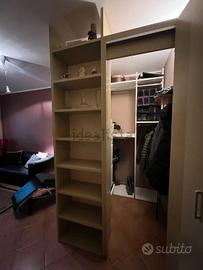 Al primo piano: soggiorno con cucina separata da porte Rimadesio, bagno con doccia, salottino, sgabuzzino, due terrazzi e balcone.