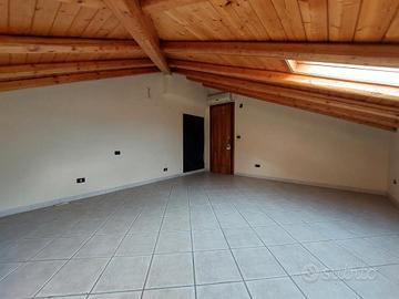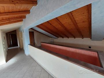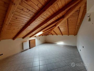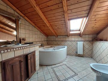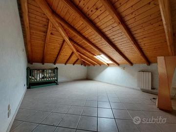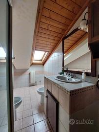 - Secondo livello mansardato, al quale come in premessa vi si accede da una scala interna collegata al piano inferiore, con un' ampia zona soggiorno, 2 camere da letto matrimoniali di cui una con servizio privato con box doccia, vano studio e/o ulteriore camera da letto singola, servizio con vasca e ripostiglio.