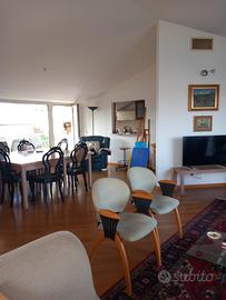 L'attico con ottime rifiniture di 128 mq coperti e calpestabili, silenzioso con splendida vista su Mailella, Porto Canale e sul ponte del Mare, é composto da: - un grande doppio salone con uscite sulle terrazze con affacci unici e meravigliosi - 2 camere, la matrimoniale dotata di cabina armadio, - cucina arredata, - 2 ampi bagni con sanitari e rivestimenti di marca. Grandi listoni di rovere rivestono i pavimenti. Gli infissi di pregio hanno grandi vetrate con vetri antisfondamento, le terrazze sono provviste di tende automatiche e di impianto idraulico. L'appartamento ha inoltre impianto fotovoltaico, riscaldamento autonomo e serbatoio d'acqua.Nelle immediadete vicinanze sono presenti tutti i servizi pubblici e privati: scuole. banche supermercati, etcc.. La vendita include ascensore e cortile. Classe energetica