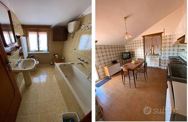 Attico a Poli (RM): Ingresso, Salone con camino, 2 Camere, Cucina abitabile, Bagno, Ripostiglio, 2 Terrazzi (totale 80 mq ca.), Box di 16 mq. con doppio accesso, interno ed esterno allo stabile, ampia cantina asciutta con finestra e altezza oltre i 3 mt. Stato originario ma abitabile da subito. Piccolo stabile in cortina in ottimo stato.No ascensore. Assolato, completamente panoramico su 4 esposizioni. Ben ubicato. Collegamenti con Roma (35 km.ca.), diretti con pullman Metro B Ponte Mammolo e indiretti con Ferrovia Zagarolo/Roma Termini.