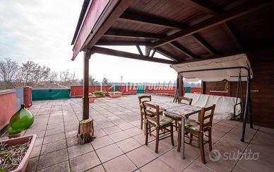 La cucina abitabile separata è un ambiente spazioso e funzionale, pensato per preparare i pasti in totale tranquillità. Dotata di tutti i comfort, la cucina dispone di un accesso diretto ad un magnifico terrazzo di 120 mq, che rappresenta il fiore all'occhiello di questa proprietà. Questo terrazzo è un vero e proprio angolo di paradiso all'aperto, dove è stata creata una cucina estiva perfetta per cenare all'aperto, godere delle serate estive in compagnia o semplicemente rilassarsi al sole. Con una superficie così ampia, il terrazzo offre spazio sufficiente per creare angoli di relax, una zona pranzo, e addirittura una zona lounge per godere di ogni momento all'aperto. La vista panoramica dal terrazzo è davvero spettacolare, un perfetto mix di natura e città che rende questo spazio un luogo ideale per vivere momenti di - Classe: D