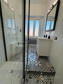 INTERNO: Disposto su circa 112 ma divisi in ampio ingresso, soggiorno, cucina abitabile, corridoio, tre camere da letto, doppi servizi e balcone. Completamente ristrutturato con pavimentazione in gres effetto legno, impianti nuovi, dotato di quattro climatizzatori, predisposizione per i pannelli solari, nuova caldaia a condensazione, porte e finestre in PVC doppio vetro, porte in legno nuove e riscaldamento autonomo. La sua quadrupla esposizione garantisce ampia luminosita e ariosita a tutti gli ambienti per tutto l'arco della giornata.