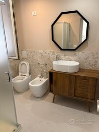 Bagno con doccia finemente accessoriato anch'esso interamente soppalcato con contenitore acqua 500lt, boiler ed autoclave.