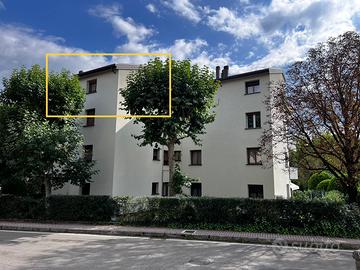 Vendo Attico di circa 90 mq al terzo piano. composto da ingresso, sala con camino, cucina, balcone, ripostiglio, due camere e bagno, arredato, con annessa autorimessa al piano sotterraneo e cantina.