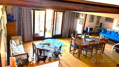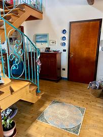 Situato al terzo piano, l'immobile si apre su una spaziosa e luminosa zona giorno, valorizzata da ampie porte-finestre che conducono a un terrazzo con splendida vista mare, perfetto per rilassarsi all'aperto. La zona è impreziosita da un bellissimo soffitto in legno con travi a vista, che dona calore e personalità all'ambiente. La cucina, riservata e funzionale, è separata dalla zona living. Completano il livello principale tre camere da letto, due bagni finestrati e un comodo ripostiglio.
