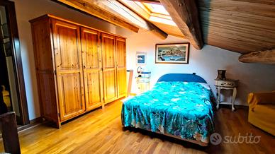 Una bella scala in legno collega al piano superiore, dove si sviluppa una soffitta già suddivisa in tre ambienti - perfetti come camere, studio o zona relax - e un ulteriore bagno.
