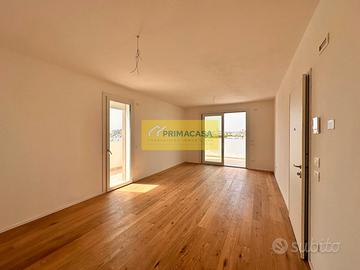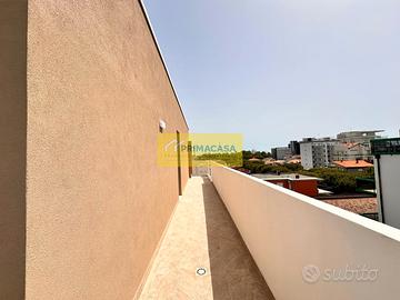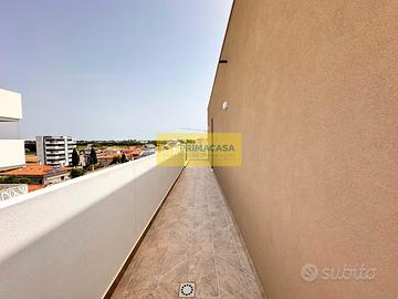 Lido di Jesolo, zona Piazza Manzoni, proponiamo in vendita attico di nuova costruzione posto al quinto ed ultimo piano in condominio di sole 11 unità. L'immobile è composto da soggiorno con angolo cottura, tre camere da letto, due bagni e tre terrazze di cui una di 46mq con vista mare. Due posti auto al piano terra. Completa la proprietà riscaldamento a pavimento, 1,5 kw dedicati grazie all'impianto fotovoltaico, serramenti in pvc e vetrocamera. Classe energetica A4. Vendita con imposta di registro al 2 o al 9%, sul valore catastale.