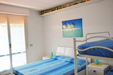 A soli 500 metri dal mare a San Vincenzo (LI) in Toscana, fresco bilocale con 5 posti letto e due ampie terrazze coperte per complessivi 15 mq. Ristrutturato recentemente, è dotato di mobilia nuova e climatizzazione.