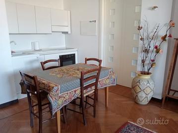 L'appartamento accoglie con un luminoso living finemente arredato con cucina a vista, ambiente moderno e funzionale, ideale per vivere e ricevere. Un comodo disimpegno conduce alla zona notte, composta da bagno e camera da letto, entrambi serviti da due finestre che regalano aria, luce e una piacevole apertura verso l'esterno vista mare.