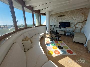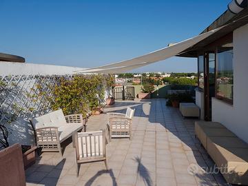 appartamento su due livelli con vista mare, giardino pensile e ampi balconi Proponiamo in vendita un raffinato appartamento su due livelli, ideale per chi cerca comfort, spazio e una vista impareggiabile. ? Composizione interna: Piano inferiore: Tre vani ampi e luminosi Doppio bagno, ideale per famiglie o ospiti Comodo ripostiglio/locale di servizio Accesso a grandi balconi panoramici Piano superiore: Spettacolare open space di ampia metratura, perfetto come zona living o ambiente multifunzionale Terzo bagno Uscita sullo splendido giardino pensile privato, un'oasi verde con vista mare ? Vista mare garantita da entrambi i livelli, con esposizione luminosa e ariosa. ? Giardino pensile unico nel suo genere: ideale per cene all'aperto, lettura o semplicemente per godersi il panorama in totale relax. ?L'immobile è situato in una zona tranquilla ma ben collegata, vicina a tutti i servizi principali. ? Perfetto per chi cerca una casa di rappresentanza, o per famiglie che desiderano ambienti ampi e distintivi.