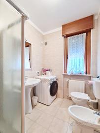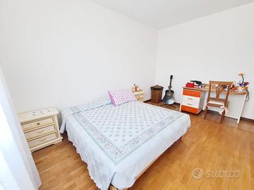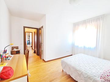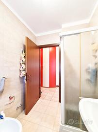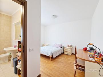 La zona notte, ben separata, comprende una camera da letto singola di buone dimensioni, un bagno finestrato con doccia e una camera matrimoniale con bagno privato dotato di vasca.