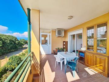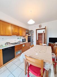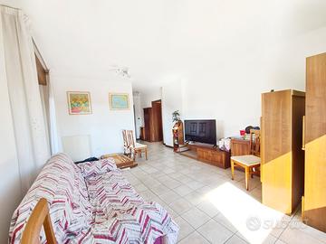 L'appartamento si sviluppa su di un unico livello: l'ingresso introduce ad una cucina abitabile che si affaccia su un grande terrazzo, condiviso con il soggiorno ma attualmente separato da una porta che ne definisce gli spazi.
