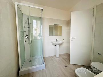 L'appartamento è stato di recente ristrutturato, ed è composto da ingresso, ampio soggiorno con due terrazze, cucina con la terza terrazza abitabile, due bagni (di cui uno solo uso wc) e due camere matrimoniali.