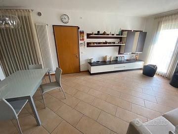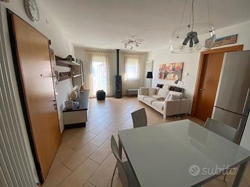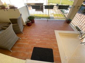 THIENE SUD: in zona tranquilla si propone in vendita appartamento in palazzina di sole 4 unità sito al piano primo con ingresso indipendente; al piano terra giardino di proprietà con scala privata che collega sia al piano primo che al piano interrato; al piano primo si trova la zona giorno con terrazzo abitabile, due camere ( una matrimoniale ed una ampia singola), servizio con doccia, servizio/lavanderia, altri due terrazzi; al piano interrato cantina e garage doppio in lunghezza; posto auto esterno riservato. Aria condizionata, allarme perimetrale e volumetrico, stufa, completamente arredato ad eccezione della camera matrimoniale. Disponibile per fine 2026.