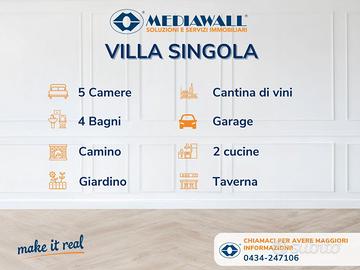 (Riferimento: BR-113-RV) Morsano Al Tagliamento (Rif. BR-113-RV). VILLA BIFAMILIARE CON AMPIO GIARDINO | 5 CAMERE DA LETTO 4 BAGNI 2 CUCINE | TAVERNA. Prestigiosa villa di ampie dimensioni in vendita a Morsano al Tagliamento. In una posizione tranquilla e riservata del comune di Morsano al Tagliamento, proponiamo in vendita una villa indipendente di generose dimensioni, ideale per famiglie numerose o per chi cerca spazi ampi e versatili. L'abitazione si sviluppa su due livelli e offre ben 5 camere da letto, di cui 4 matrimoniali e una doppia, oltre a 4 bagni finestrati: due dotati di doccia e due con vasca. La villa dispone inoltre di due cucine abitabili, ideali per chi ama cucinare o per chi desidera dividere l'abitazione in due unità distinte, e di una taverna molto ampia dotata di suggestivo camino, perfetta per cene conviviali, feste o momenti di relax. Completano la proprietà locali di deposito, una comoda cantina per i vini e un garage. Recentemente sono stati effettuati importanti interventi di ristrutturazione, tra cui il rifacimento del tetto, la ristrutturazione di un bagno al piano terra, il rinnovamento degli impianti elettrici e idraulici e la posa di nuovi pavimenti nelle camere da letto. All'esterno, un grande giardino circonda la casa, offrendo privacy e spazi verdi da vivere. La proprietà è dotata anche di una piscina, attualmente da ristrutturare, che rappresenta un grande valore aggiunto per chi desidera creare un'area relax privata. Questa villa rappresenta un'opportunità unica per chi cerca una casa spaziosa, già in parte ristrutturata, da personalizzare secondo il proprio gusto.