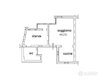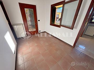 Al piano terra, l'ingresso accoglie a cucina/soggiorno, camera e annesso un bagno finestrato con doccia.