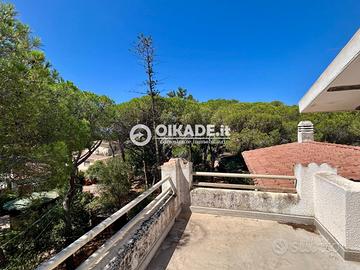 All'esterno, la villa è circondata da un ampio giardino privato di circa 1.800 mq su tre lati, un'oasi di pace perfetta per chi cerca privacy e relax, senza rinunciare alla comodità dei servizi e alla vicinanza al mare.