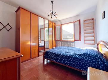 (Riferimento: B989) Sogliano al Rubicone nella frazione di Montegelli, immersa nella quiete delle colline romagnole, questa casa bifamiliare indipendente rappresenta una soluzione ideale per chi desidera vivere in un contesto verde e riservato, con ampi spazi a disposizione. La proprietà si compone di due unità abitative distinte, disposte rispettivamente al piano terra e al primo piano, ed è circondata da una spaziosa corte esclusiva. Sul fronte si apre un'area completamente pavimentata, ampia e vivibile, perfetta la convivialità all'aperto. Sul lato sinistro, una scalinata conduce a un terrazzamento pavimentato e alla corte retrostante in ghiaia, dove si trova anche un secondo accesso indipendente. L'unità al piano terra si apre su un ampio ingresso e comprende una zona giorno con angolo cottura, un disimpegno e un bagno. Al piano superiore si sviluppa invece l'abitazione principale: una generosa zona living, una cucina abitabile, tre camere da letto, un bagno e un comodo ripostiglio. Da una delle camere si accede direttamente a una splendida terrazza di 44 mq, ideale per momenti di relax all'aperto, circondati dalla tranquillità della campagna. Completano la proprietà due garage al piano terra, con comodo accesso esterno. Una casa versatile, che si presta a diverse esigenze abitative e offre un perfetto equilibrio tra comfort, indipendenza e natura.
