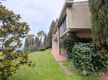 (Riferimento: TERNI07-1) In posizione dominante, a solo 2 km dal centro di Terni, proponiamo una villa bifamiliare (possibilità di convertire in unifamiliare) circondato da un ampio giardino panoramico con alberi misti e un uliveto d'ulivo, completamente recintato con cancello automatico. Perfetta soluzione per chi ama il verde e la pace ma vuole vivere in città vicino i servizi. La casa si sviluppa su tre livelli divisi un due unità abitative specchiati (7.5 vani per ogni abitazione, di 208 e 230 mq) composti come segue: Piano terra / seminterrato: Ingresso nel soggiorno con doppia altezza, camino e vetrata panoramica sul giardino, cucina, bagno, lavanderia e stanza tecnica. La scala nel soggiorno conduce al piano intermedio dove si trova l'ingresso principale che si accede da un porticato. Primo piano: tre camere e due bagni. Una delle camere e dotato da una finestrata molto panoramica mentre un'altra ha un balcone panoramico. Completa la proprietà il bosco di circa mezzo ettaro. Ottima posizione. Situazione unica.