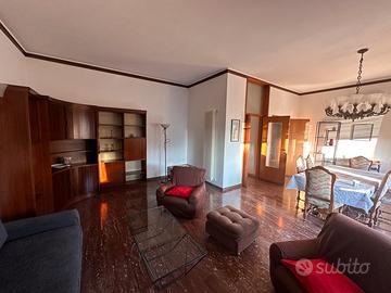 Al primo piano l'appartamento, con ampio ingresso/disimpegno arredabile, salone doppio con grande loggia, cucina abitabile con balcone (verandabile) da cui si accede a bagno/lavanderia finestrato, studio; si prosegue con corridoio notte con armadiature a muro, due camere matrimoniali e due camere singole, ampio bagno finestrato con doccia.