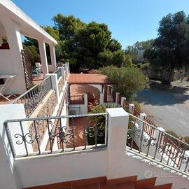 Splendida bifamiliare in vendita a Carloforte (isola di San Pietro) in località Punta Nera libera sui 3 lati su un lotto di terreno con giardino alberato di circa 2000 mq. Posizione incantevole a pochi passi dalle spiagge di Punta Nera e Girin, la bifamiliare si trova sulla provinciale che dal paese porta alle spiagge, accesso diretto dalla provinciale da cancello elettrico, viale alberato e illuminato. L'immobile dista solo 4 km dal centro abitato di Carloforte. Su tutto il terreno sono presenti predisposizioni di punti acqua e luce, ci sono anche ampie pinete e due ulivi vicino al secolo di vita. Riserva idrica tramite pozzo artesiano. Sistema fognario con riciclo acque nere tramite imhoff. Attualmente la connessione internet è presente tramite parabola. Lavori comunali già in corso per eventuale allaccio internet/fibra e acquedotto Abbanoa (qualora ci si volesse allacciare). Nel giardino curato fronte villa c'è la possibilità di realizzare una piscina. La zona esterna è attrezzata con zona barbecue, posti auto all'ombra, doccia, ripostigli e magazzini. Ci sono tra loggiati, terrazze, verande aperte e chiuse, marciapiedi e balconi circa 150 mq. L'immobile è composto da due piani, piano terra e primo piano per un totale di circa 130 mq. Il piano terra è allo stato grezzo al primo piano ampio trivano composto da ingresso soggiorno con angolo cottura, due camere da letto, bagno e ampio disimpegno dove poter ricavare la scala interna per scendere al piano terra. Questa struttura offre la possibilità di realizzare un secondo immobile indipendente al piano terra o unirlo al primo piano. Struttura ideale anche come investimento per locazioni. Generosa la superficie del tetto che può ospitare pannelli fotovoltaici. Ottime le condizioni generali. Gradito solo su whatsapp o alla email/messaggistica.