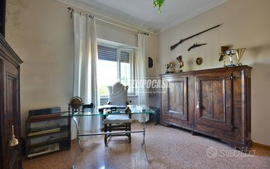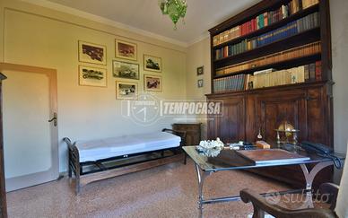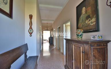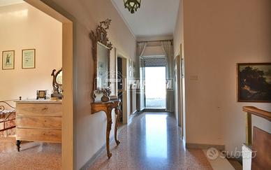 Al piano superiore, la zona giorno comprende un ampio soggiorno, una cucina abitabile con ripostiglio e balcone, un'ampia sala da pranzo, uno studio signorile, un ampio bagno finestrato e accesso ad uno dei due terrazzi di 46 mq.