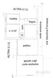 Il secondo appartamento è un trilocale composto da ingresso sul disimpegno, soggiorno, cucina, camera matrimoniale e bagno finestrato.