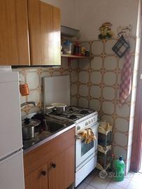 Bilocale arredato, camera da letto matrimoniale, soggiorno con angolo cottura e divano letto matrimoniale, wc con doccia, lavatrice, balcone al piano rialzato