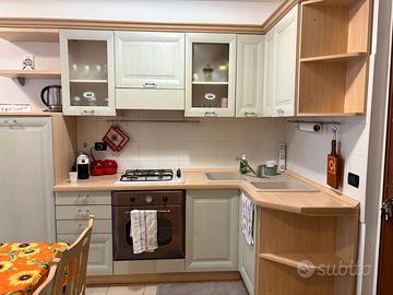 Cucina attrezzata con piano cottura a 4 fuochi, cappa, forno, frigorifero, corredata di tutte le stoviglie.