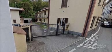 Bilocale ben manutenuto ad uso civile abitazione IN ASTA,suddiviso tra piano primo e piano secondo, raggiungibile con scala interna, composto al piano primo da un vano soggiorno con piccola cucina separata, al piano secondo da camera e bagno areato con piccolo antibagno. La scala interna è priva di parapetto al piano secondo. Buone finiture in gres porcellanato ed i serramenti in legno hanno vetrocamera. Ad esso si accede da pubblica via Roma al civico 18, quindi da corte comune e da scala e ballatoio, un piccola porzione del quale è di esclusiva proprietà. Il compendio si completa con giardino situato a nord del cortile condominiale al piano primo, sopra i boxes.