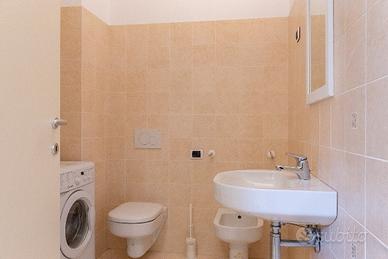 - Bagno moderno con sanitari sospesi, ampio box doccia e rubinetteria di design