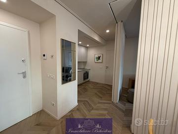 In palazzina di recente costruzione, nei pressi di tutti i principali servizi ed a pochi minuti da Via Gioberti, IMMOBILIARE BELVEDERE propone in affitto luminoso e caratteristico appartamento (70mq ca) situato ad un primo piano intermedio con ascensore composto da: ingresso, soggiorno, cucinotto, camera da letto matrimoniale con servizio oltre a terrazza abitabile (20mq ca). L'immobile è dotato di aria condizionata, porta blindata, faretti ad incasso e videocitofono, viene consegnato completamente arredato, completo di elettrodomestici e con mobilia ricercata in stile moderno. Contratto proposto transitorio massimo 12 mesi. Spese condominiali ed utenze valutata circa € 200 mensili con eventuale conguaglio trimestrale. Richieste massime garanzie. Classe Energetica A