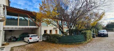 L'APPARTAMENTO ha una doppia entrata, una direttamente dalla strada ed una dall'ingresso condominiale. L'immobile è composto da 4 locali di grandi dimensioni ed un bagno finestrato. Ingresso soggiorno, cucina, bagno con antibagno camera matrimoniale ,camera singola. In proprietà abbiamo inoltre una corte esterna di 45 mq dove i clienti possono parcheggiare le auto, un portico interno al cortile di 24 mq dove si possono parcheggiare al coperto ulteriori 2 auto ed una cantina interrata di 10 mq. L'immobile è attualmente accatastato ufficio, il cambio d'uso è a carico della parte venditrice . L'intero edificio è composto di 4 appartamenti ed è stato integralmente ristrutturato nell'anno 2009 è dotato di finiture di buon livello: travi a vista, finestre e porte finestre in legno con il doppio vetro chiusi da oscuri alla vicentina, portoncino blindato, nel bagno sanitari sospesi. La caldaia di riscaldamento è a condensazione, è condominiale ed è dotata di contabilizzatori per calcolare il consumo di ogni singola unità immobiliare. La palazzina è dotata di un ampio cortile condominiale interno dove si possono parcheggiare ulteriori auto.Inoltre abbiamo un terreno di 3600 mq che potrà essere suddiviso fra le 6 unità immobiliari. Classe energetica D