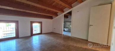 L'appartamento è totalmente mansardato con le travi a vista in tutte le stanze.