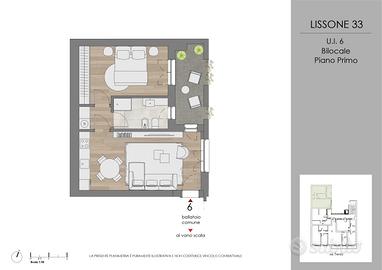 In particolare proponiamo in vendita ampio e luminoso appartamento bilocale, posto al primo piano, composto da soggiorno con cucina, camera da letto matrimoniale, disimpegno, bagno finestrato, lavanderia/ripostiglio e terrazzo/loggia di 9 mq.