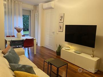 L'appartamento, che gode di un'ottima esposizione a sud est, risulta essere molto luminoso. Si compone di soggiorno con cucina e accesso diretto al giardino privato loggiato, disimpegno, camera da letto matrimoniale, cabina armadio e bagno finestrato.