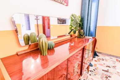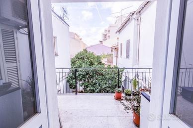Entrati nell'appartamento troviamo la zona living separata dalla cucina, che è abitabile con uscita sul balconcino sul retro e sul fondo il bagno, molto comodo dotato di box doccia in cristallo. La camera da letto matrimoniale e di ampie dimensioni e si affaccia sulla principale Via Mameli con un secondo balcone dedicato.