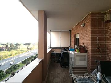 Parco Leonardo Complesso "Polis", Via Mantegna, quinto piano, semi arredato, luminoso, ottima esposizione (sud), buono stato, composto da: salone, cucinotto con tutti elettrodomestici, 1 camera matrimoniale, 1 bagno fuori camera con finestra e vasca idromassaggio, disimpegno, terrazzo mq 20, box auto. Climatizzata. Contratto 3+2. Solo referenziati. Termoautonomo, allarme, videocitofono, ascensore, infissi in legno con doppi vetri, porta blindata, parquet, ripostiglio esterno con aspirapolvere centralizzato, fibra ottica e cassetta di sicurezza. Parco Leonardo, vicinanza aeroporto di Roma "Leonardo Da Vinci", Commercity e Nuova Fiera di Roma. Zona in forte espansione residenziale e commerciale, ben servita (vicinanza centro commerciale "Parco Leonardo" e Market "Da Vinci", scuole d'infanzia e primarie), e ottimamente collegata (treno metropolitano Fm1 tratta Fiumicino aeroporto-Roma-Orte, e autostrada A24 Roma Fiumicino Civitavecchia, oltre bus navetta). Non si accettano animali. Il canone di affitto è di 800 €+ 90 € di condominio (comprensivo del consumo di acqua).