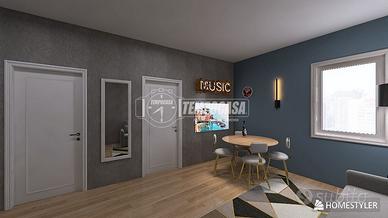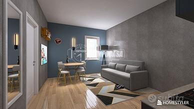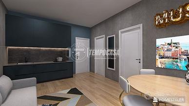 Ingresso nella giorno con soggiorno e cucina a vista, una camere da letto spaziose e un bagno moderno e funzionale.