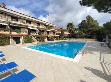 Privato vende bilocale in residence con piscina con strepitosa vista mare panoramica sul porto e il centro storico nel comune di Porto Azzurro, all'Isola d'Elba. Circa 60 mq più un meraviglioso spazio esterno, che al mare è quel che conta di più: un portico esclusivo di 42 mq (con tende da esterno elettriche) e un giardino privato di 50 mq con accesso diretto, e privato, alla piscina condominiale aperta da giugno a ottobre. Più lavanderia esterna all'appartamento con il posto anche per due biciclette. Comodissimo piano terra, posto auto doppio (!) assegnato, più posti auto liberi nel parcheggio del residence. Privacy assoluta essendo l'appartamento al limite della struttura del residence alla fine di una strada privata e chiusa, quindi senza traffico. Praticamente una villetta a schiera. Il lungomare (con piccola spiaggia comunale attrezzata e gratuita) e il centro storico del paese si raggiungono in 5 minuti a piedi (con un dislivello di poche decine di metri), una spiaggia grande attrezzata e con bar e ristoranti, in 15 minuti a piedi attraverso una strada sterrata in mezzo al verde, o 5 minuti in auto. Il portico può ospitare una pergola bioclimatica di 4 metri per 3 (installabile senza permessi) per aumentare lo spazio abitabile o ricavare una seconda camera da letto. In realtà se ne possono mettere perfino tre sfruttando tutto il portico. Spiaggia per cani (2 euro al giorno) a 2 km. Nessuna commissione visto che è una vendita da privato.
