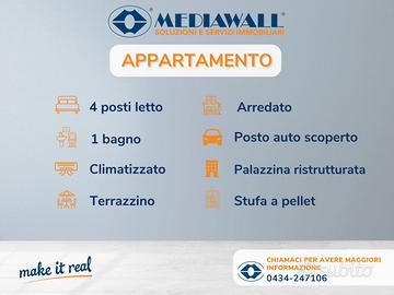 L'appartamento viene ceduto completamente arredato ed è accessoriato di lavastoviglie, finestre in pvc triplo vetro anta/ribalta con cassonetti isolati, tapparelle nuove in pvc e stufa a pellet.