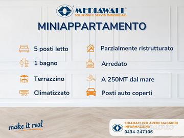(Riferimento: BR-356-RV) Bibione - Lido dei Pini - "Condominio AIRONE 2" (Rif. BR-356-RV) A SOLI 250MT DALLA SPIAGGIA | MINIAPPARTAMENTO CON 5 POSTI LETTO | TERRAZZINO CON ESPOSIZIONE SUD/OVEST | PARZIALMENTE RISTRUTTURATO E COMPLETAMENTE ARREDATO | PALAZZINA IN OTTIME CONDIZIONI | CLIMATIZZATORE (CALDO/FREDDO) | ACQUA DISPONIBILE TUTTO L'ANNO | SPESE CONDOMINIALI MINIME
