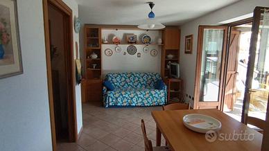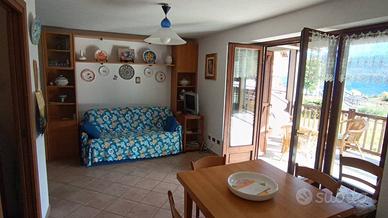(193311588) - Splendido appartamento al piano terra composto da ingresso, servizio, zona giorno con angolo cottura separato, camera, ampia terrazza meravigliosa con diritto di uso esclusivo su giardino di circa 40 Mq. con ampio e comodo garage al piano terra. Termo autonomo a Gas GPL con caldaietta a condensazione esterna, il tutto completamente arredato. Vista incantevole ed esposizione a Sud. - Classe: F - IPE: 175.00 kWh/mq anno